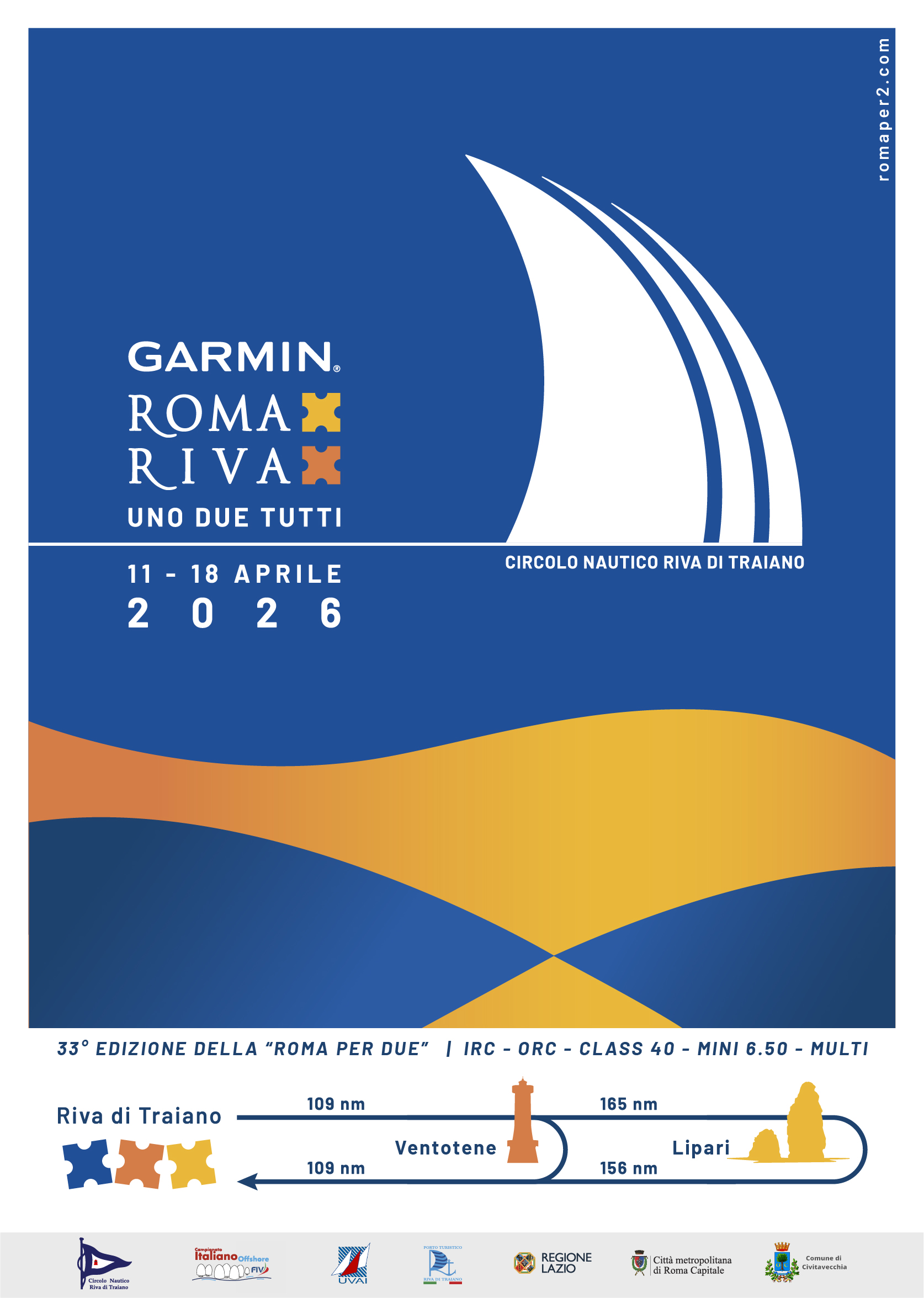 L’edizione 2026 partirà dal porto turistico di Riva di Traiano sabato 11 aprile e si concluderà con la cerimonia di premiazione sabato 18 aprile 2026. La Garmin Roma per Due comprende la Garmin Roma per Uno, Due, Tutti e la Garmin Riva per Uno, Due, Tutti, due regate distinte ma complementari, accomunate dallo stesso spirito: navigazione d’altura, strategia, gestione dell’equipaggio e capacità di interpretare il Mar Tirreno nella stagione primaverile. In Italia è l’unico evento a proporre una doppia sfida in solitario, con la Garmin Roma per Uno e la Garmin Riva per Uno.
